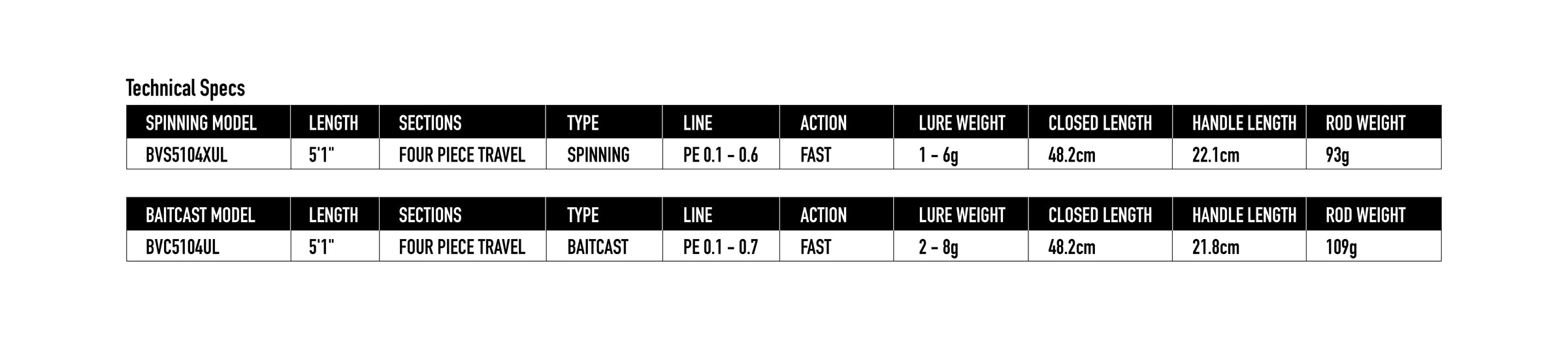 Equipped with FUJI TVS (Spinning) and FUJI ACS (Baitcast) reel seats.