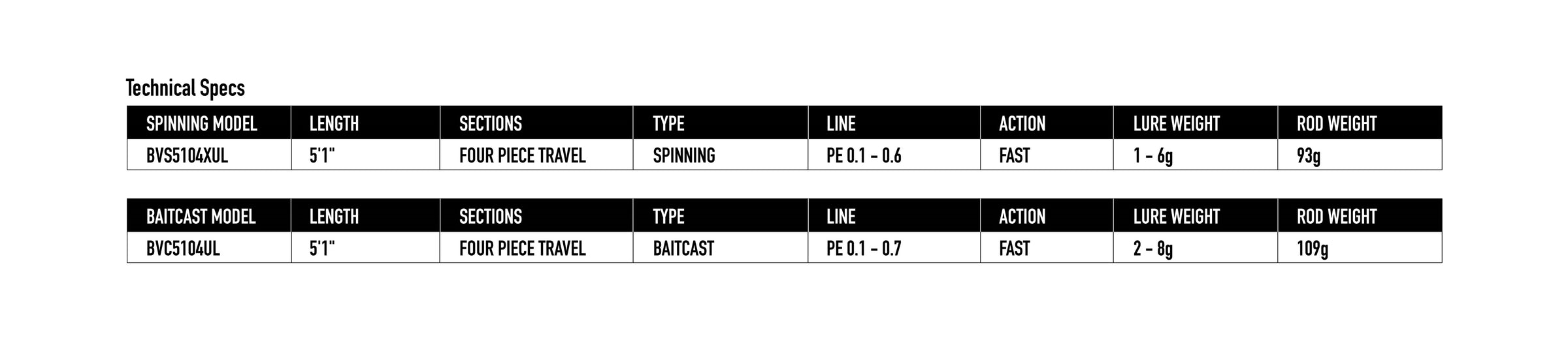 Equipped with FUJI TVS (Spinning) and FUJI ACS (Baitcast) reel seats.