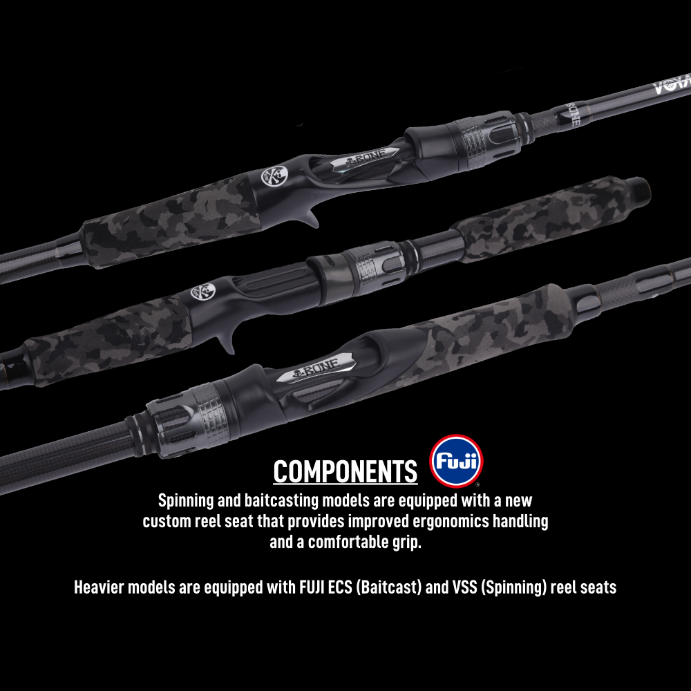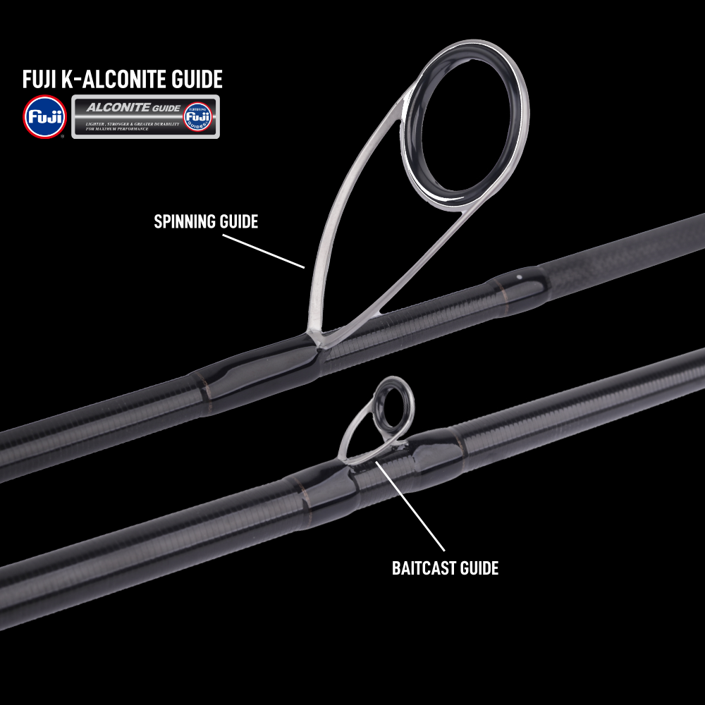 Equipped with FUJI K-Alconite guides for both spinning and baitcasting models.